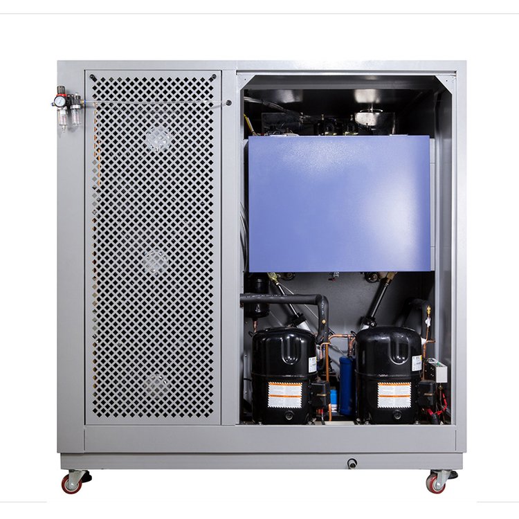 控制系統(tǒng)的PLC(可程式設(shè)計控制器)根據(jù)試驗條件自懂調(diào)節(jié)制冷機(jī)的運(yùn)轉(zhuǎn)工況;